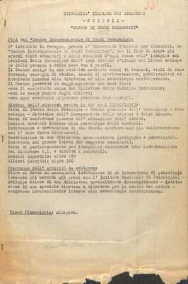 Fini del "Centro Internazionale di Studi pedagogici", sintesi dell'attività svolta in tre anni (1950/1952) e programma dell'attività da svolgere.