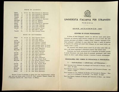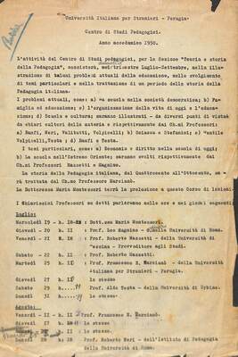 Programma del corso del Centro di Studi Pedagogici, Perugia, 1951.