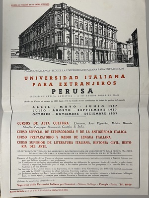 Locandina dei corsi tenuti presso l’Università per Stranieri di Perugia in spagnolo.