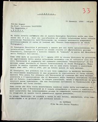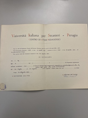 Archivio storico dell’Università per Stranieri di Perugia, serie Carteggio amministrativo, b.138 “33 ABC”.