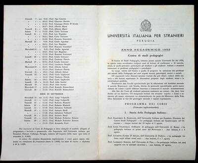 Programma del corso del Centro di Studi Pedagogici, Perugia, 1959.