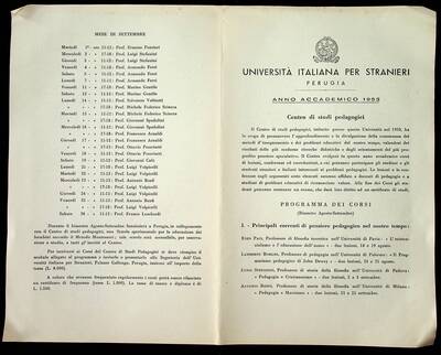 Programma del corso del Centro di Studi Pedagogici, Perugia, 1953.