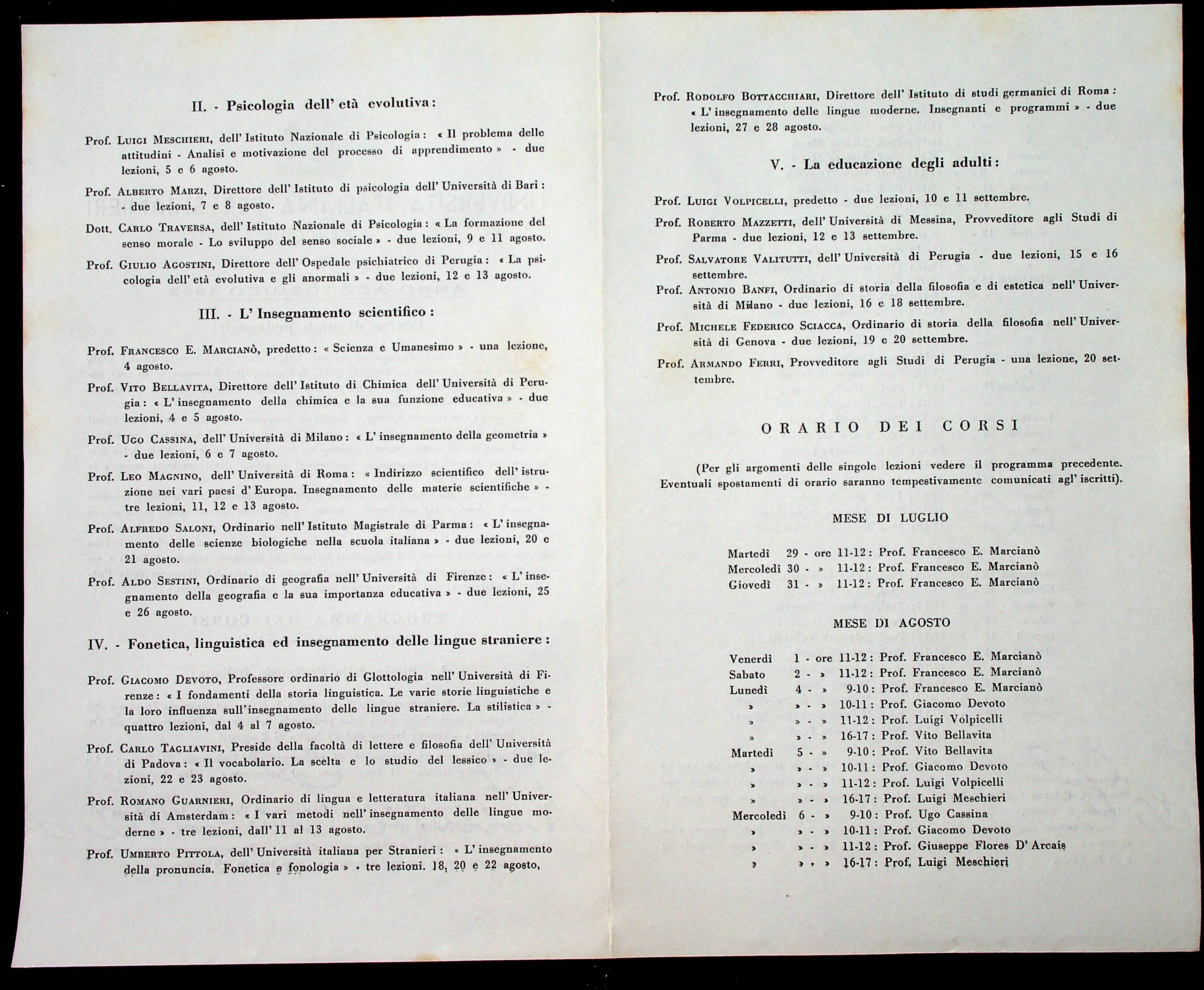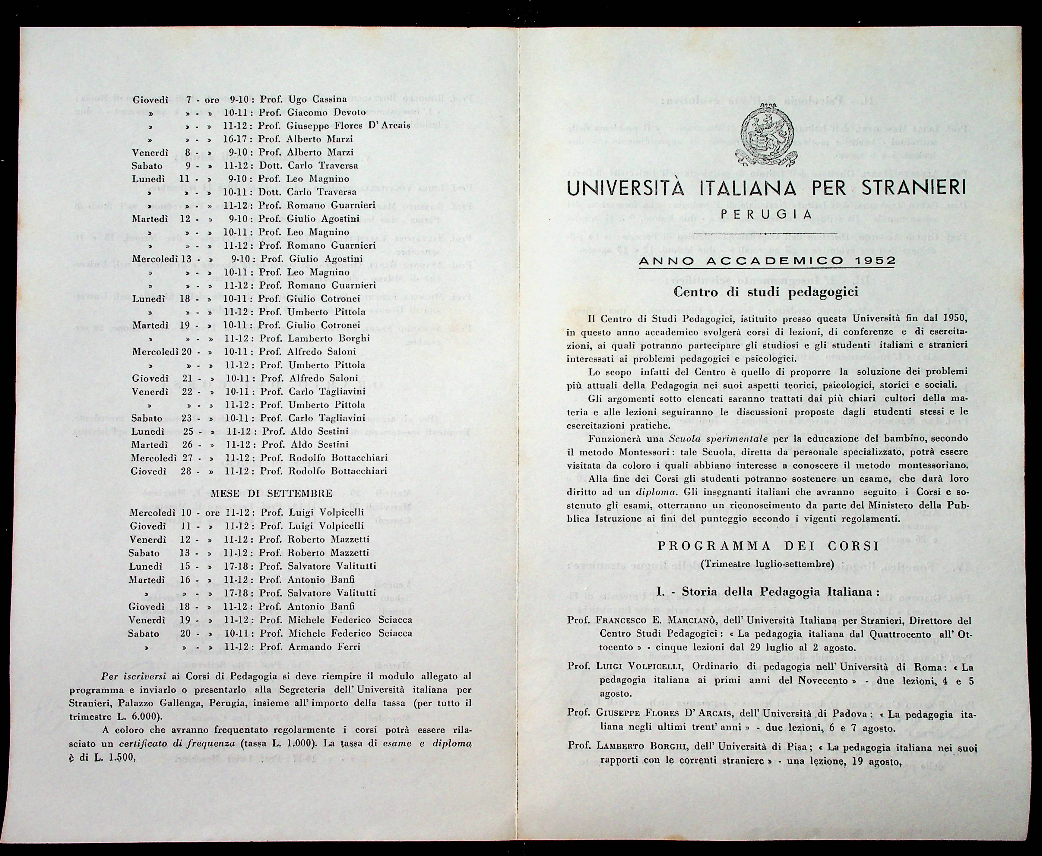Programma del corso del Centro di Studi Pedagogici, Perugia, 1952.