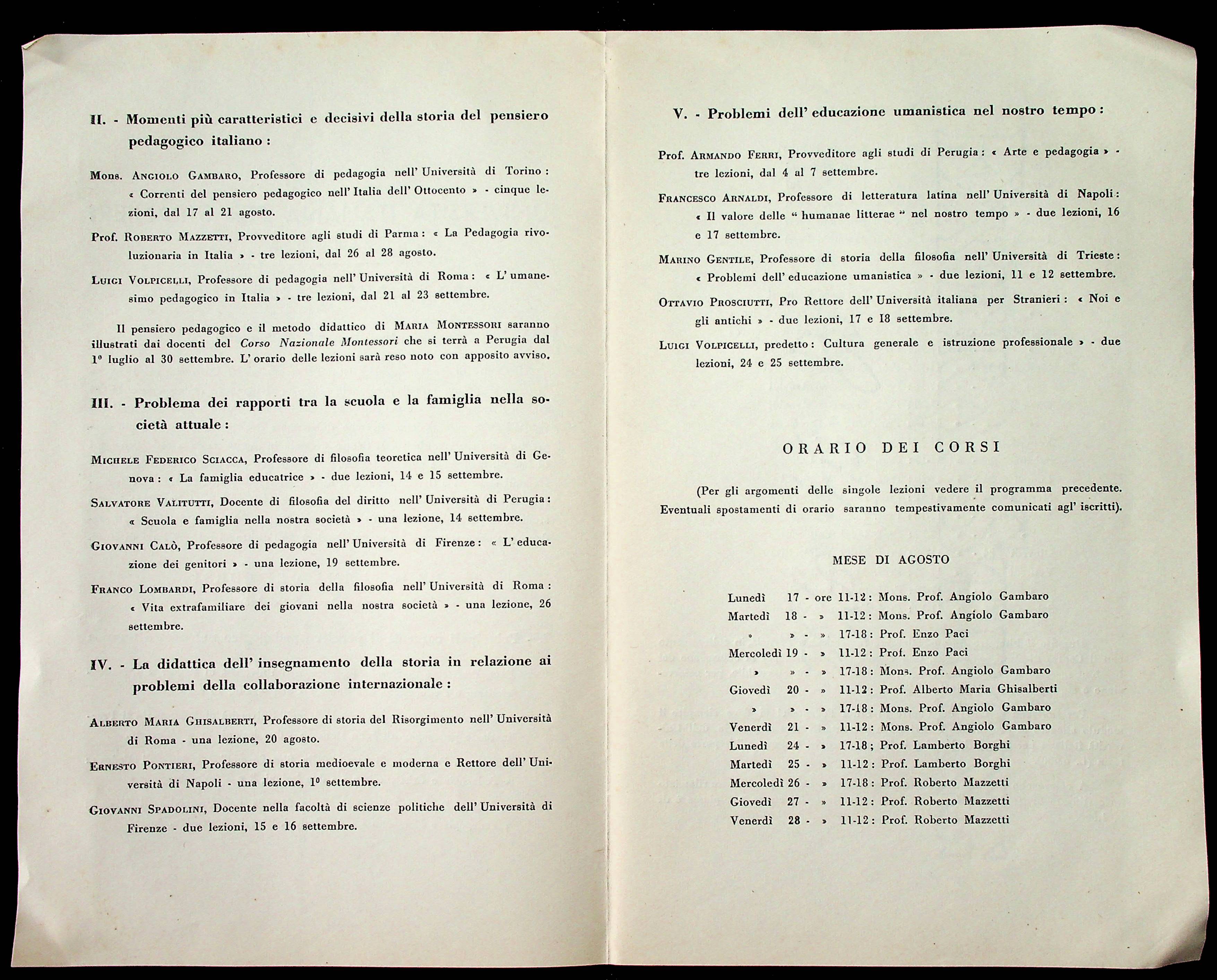 Programma del corso del Centro di Studi Pedagogici, Perugia, 1953.