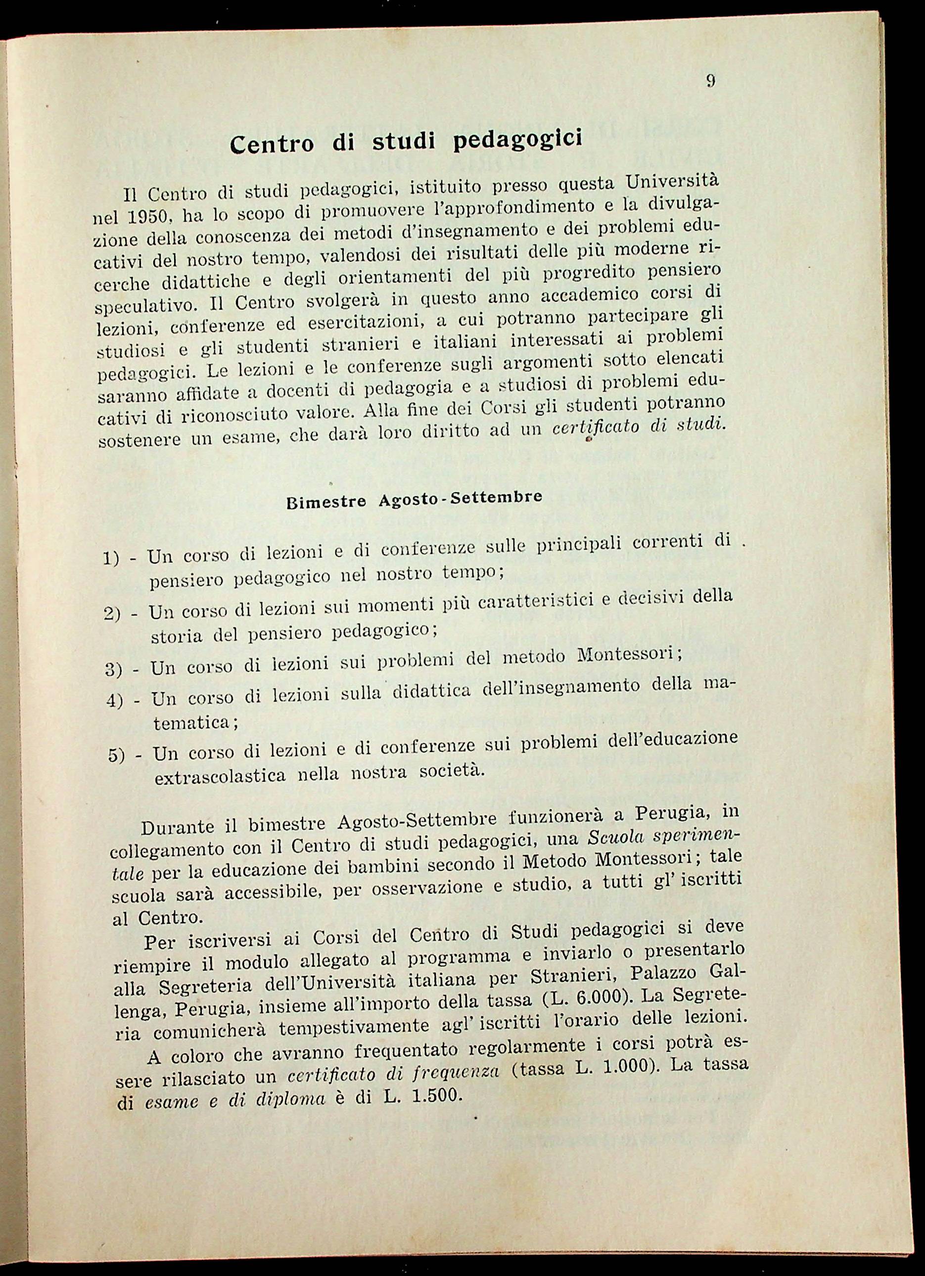 Programma del corso del Centro di Studi Pedagogici, Perugia, 1954.