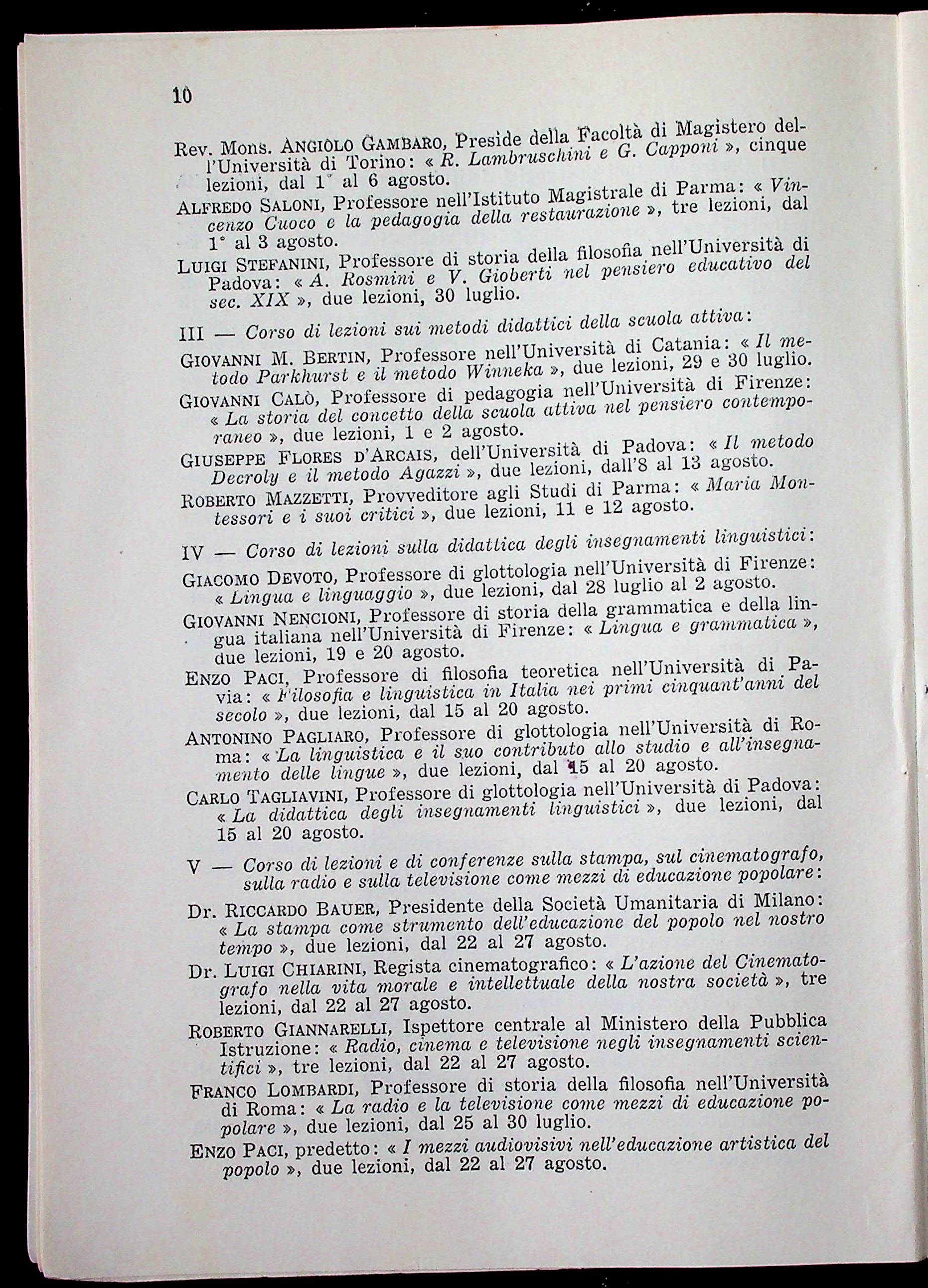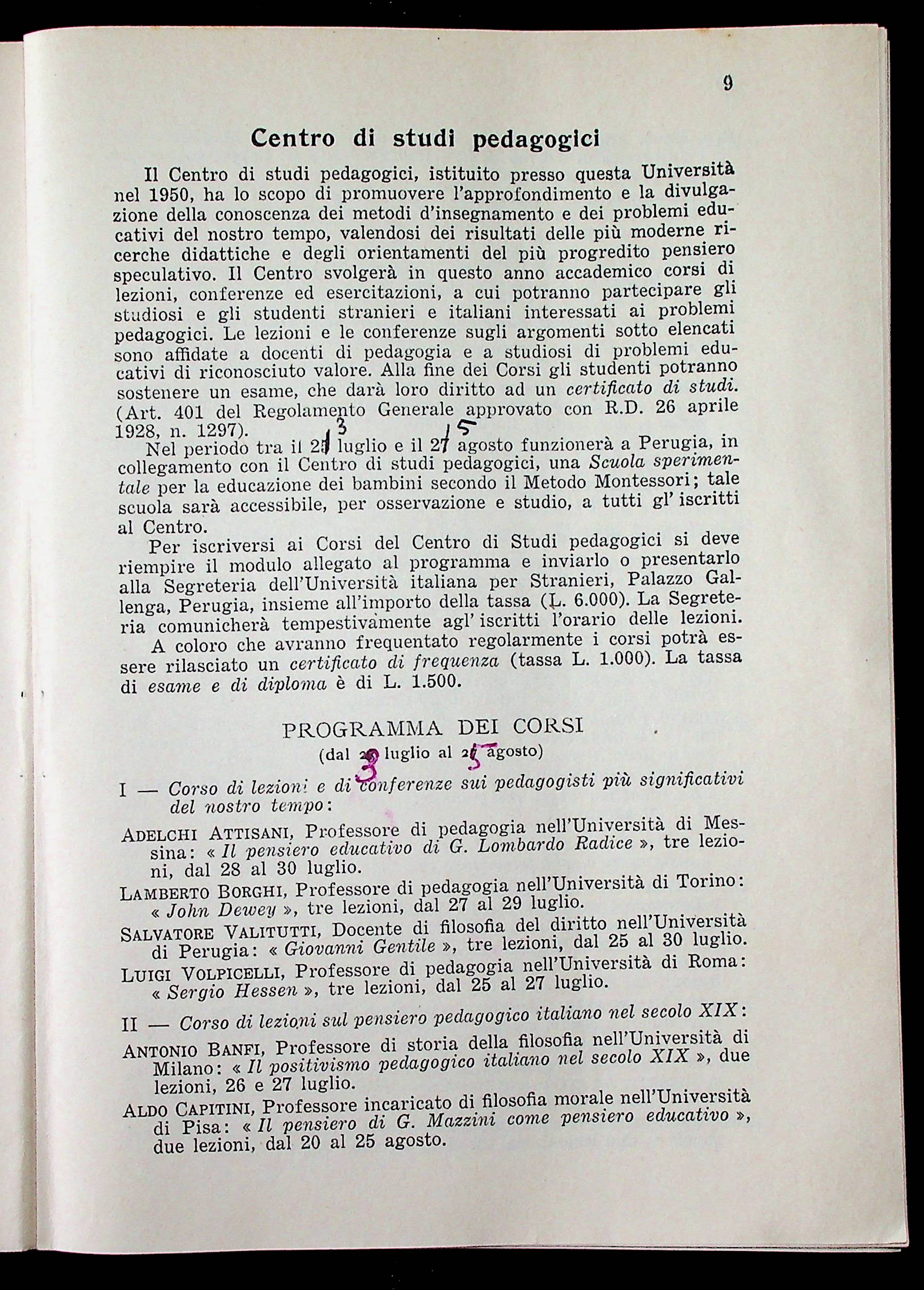 Programma del corso del Centro di Studi Pedagogici, Perugia, 1955.
