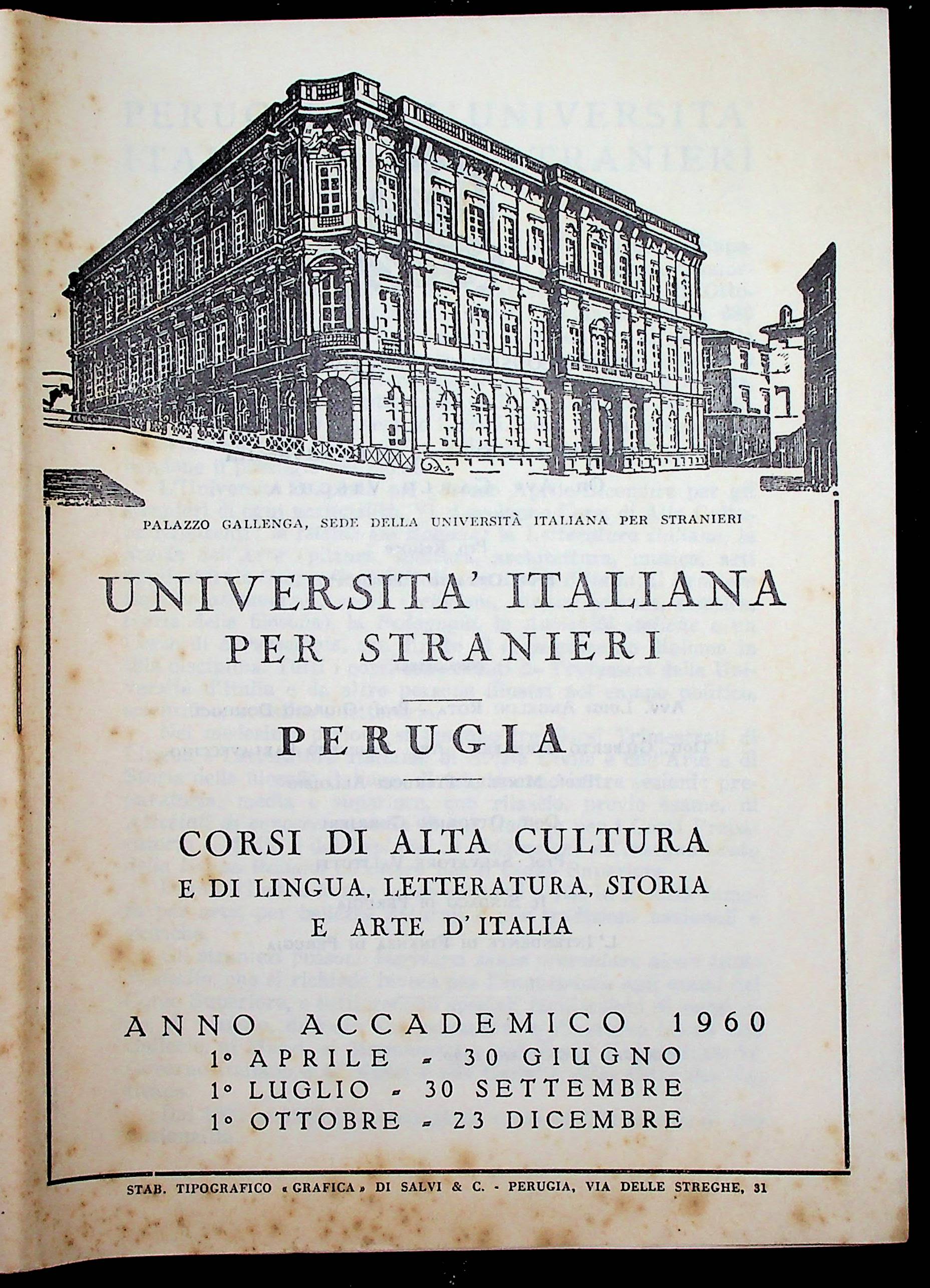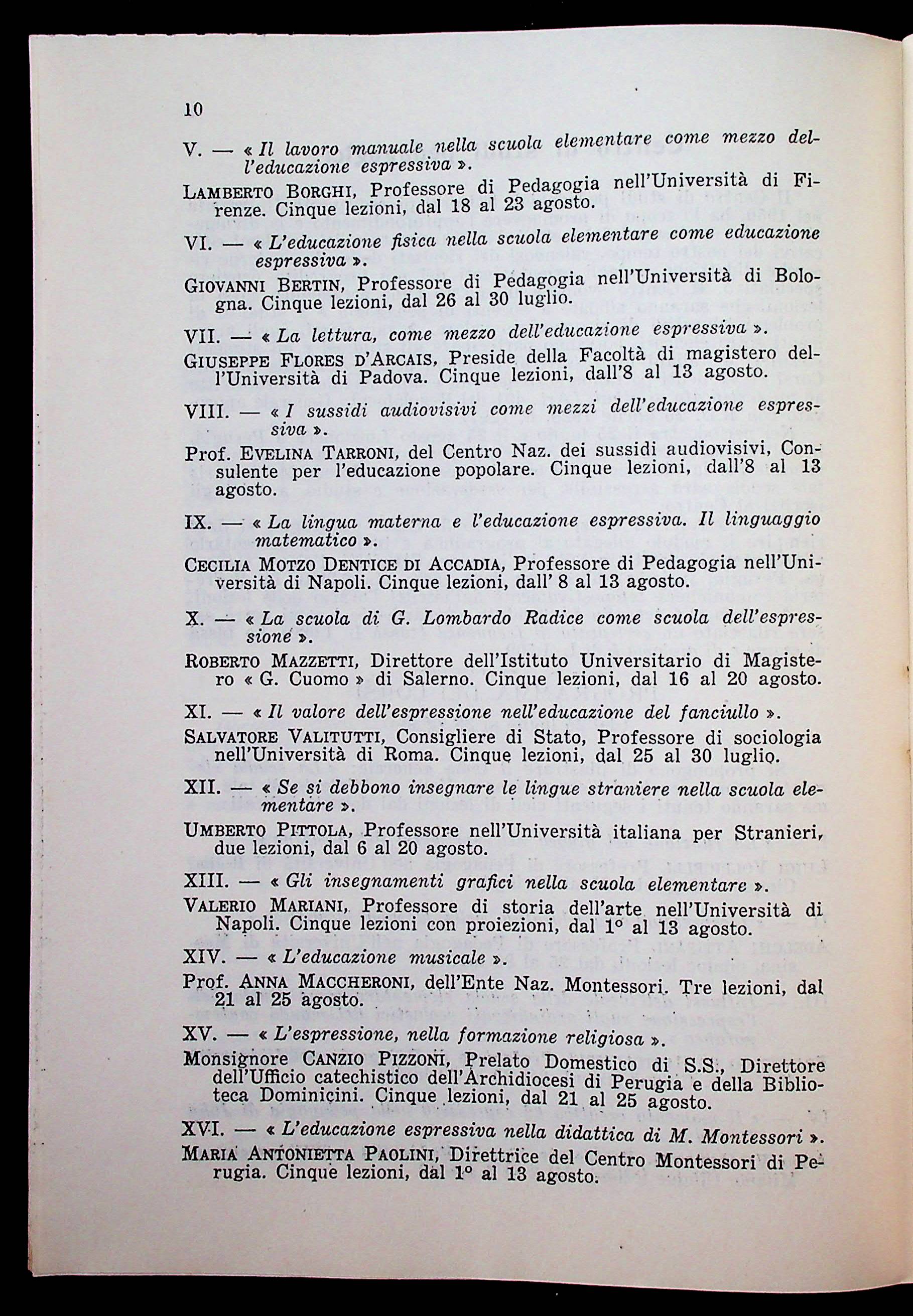 Programma del corso del Centro di Studi Pedagogici, Perugia, 1960.