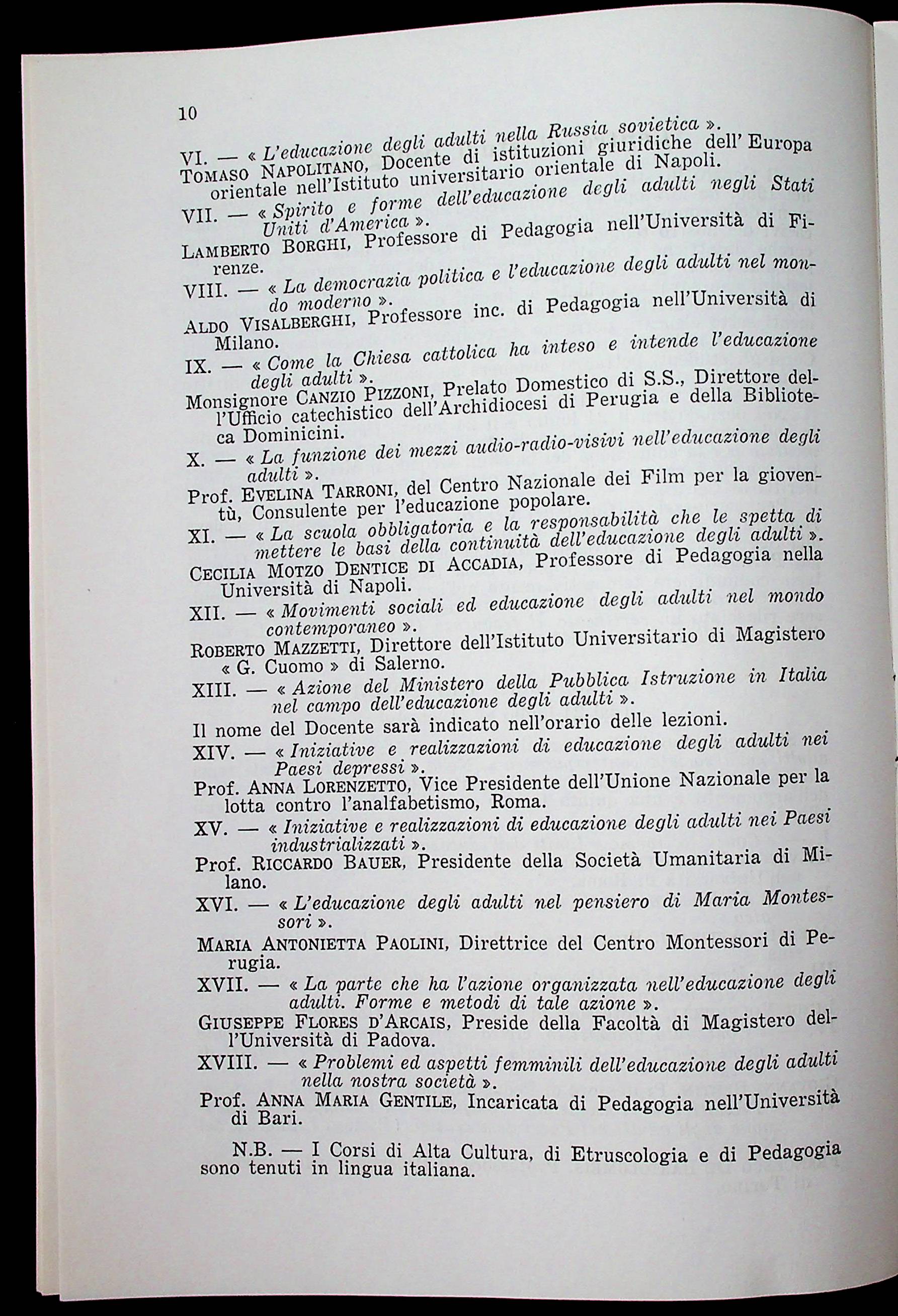 Programma del corso del Centro di Studi Pedagogici, Perugia, 1961.