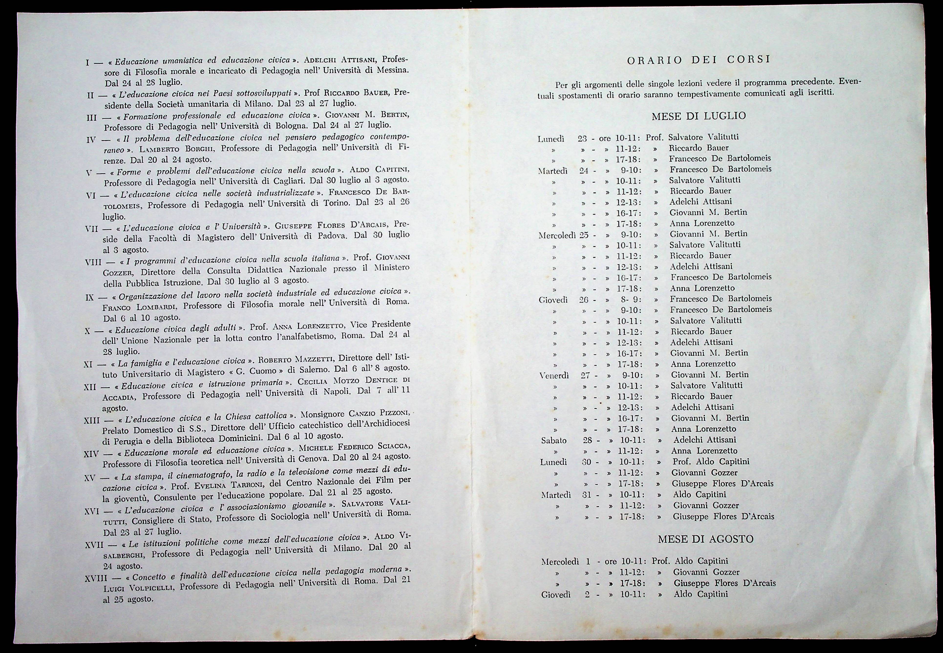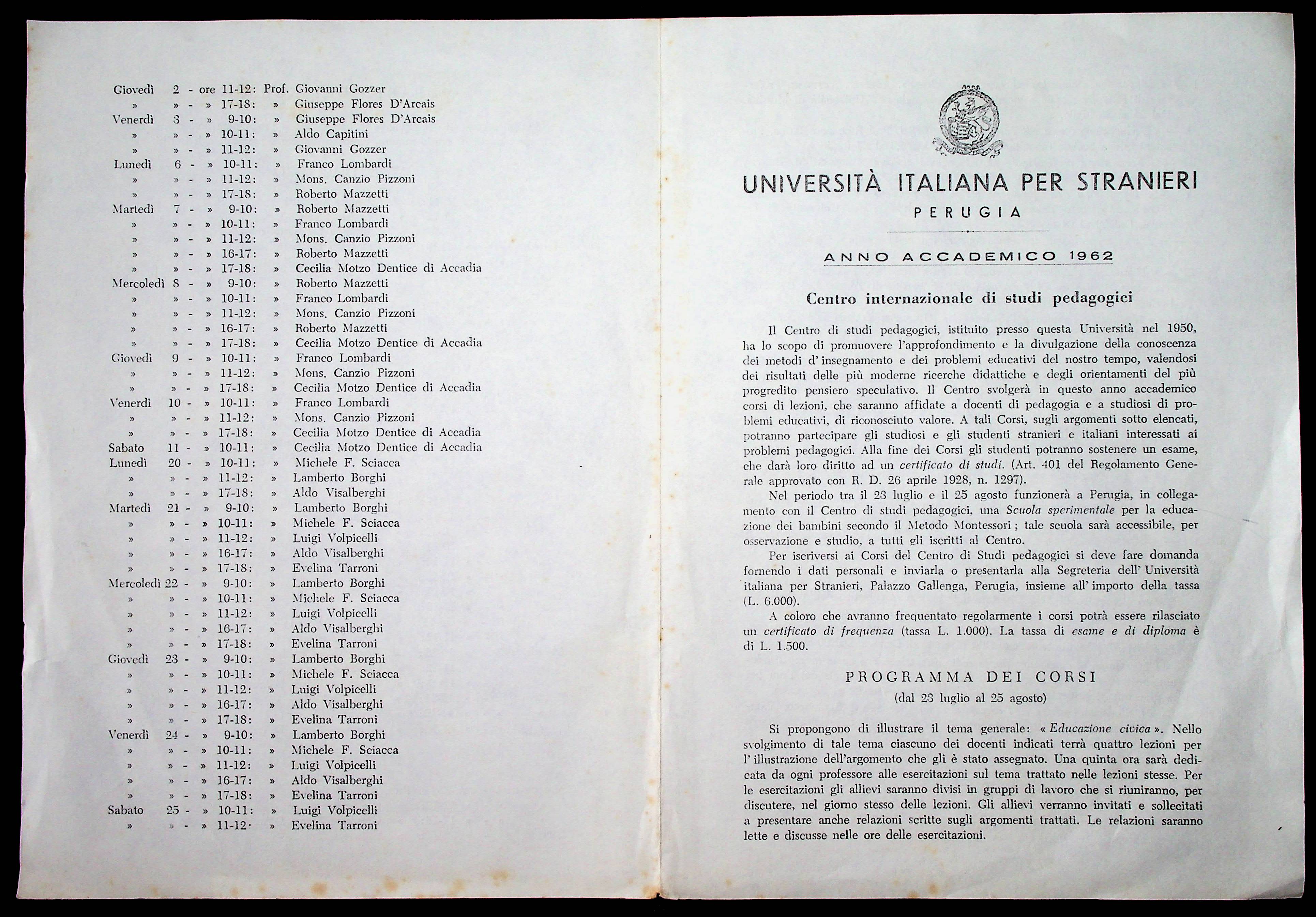 Programma del corso del Centro di Studi Pedagogici, Perugia, 1962.