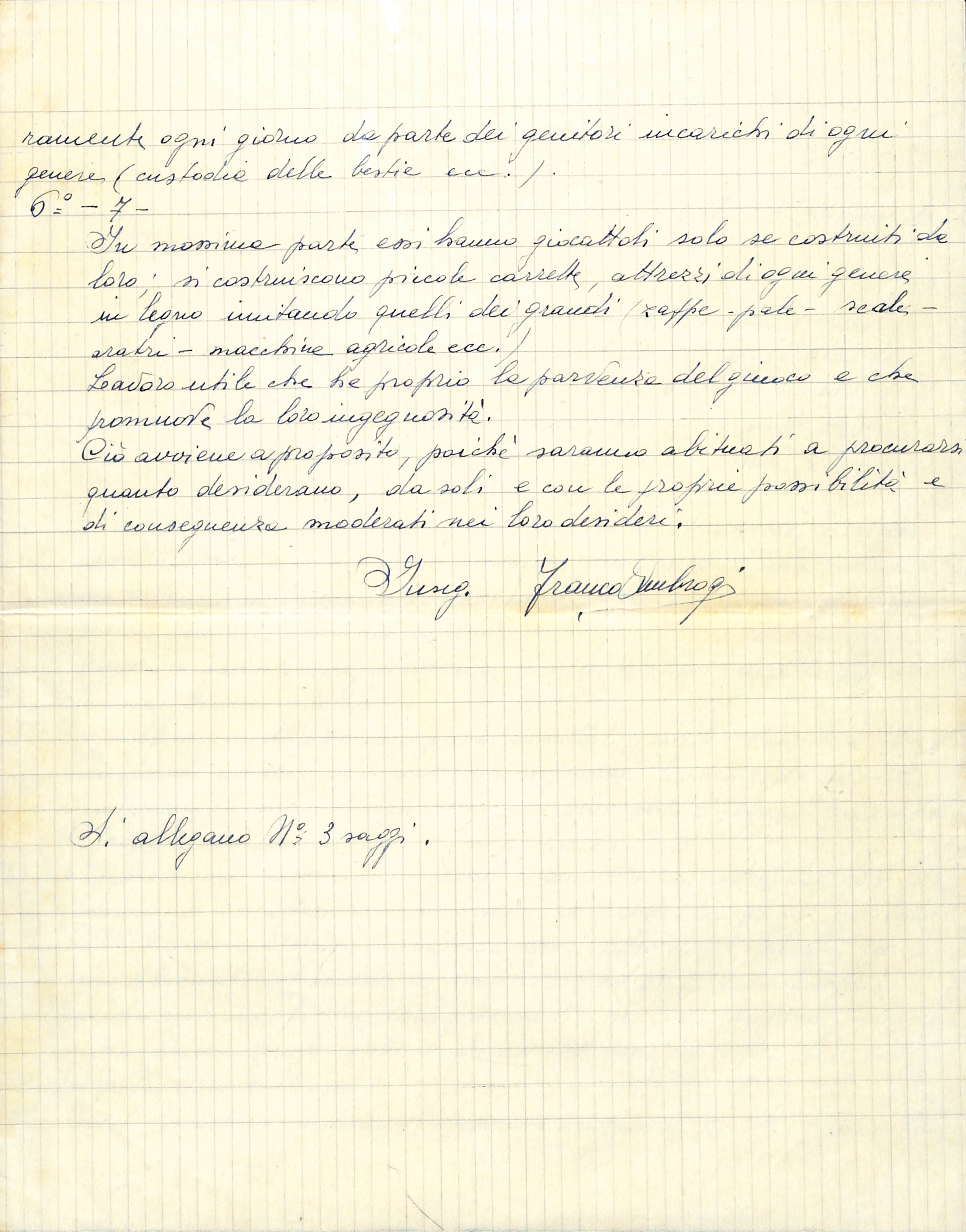 Relazione manoscritta intitolata “Indagine di carattere psicologico”, dell’insegnante Franca Ambrogi, S. Cristina, 29 aprile 1952.
