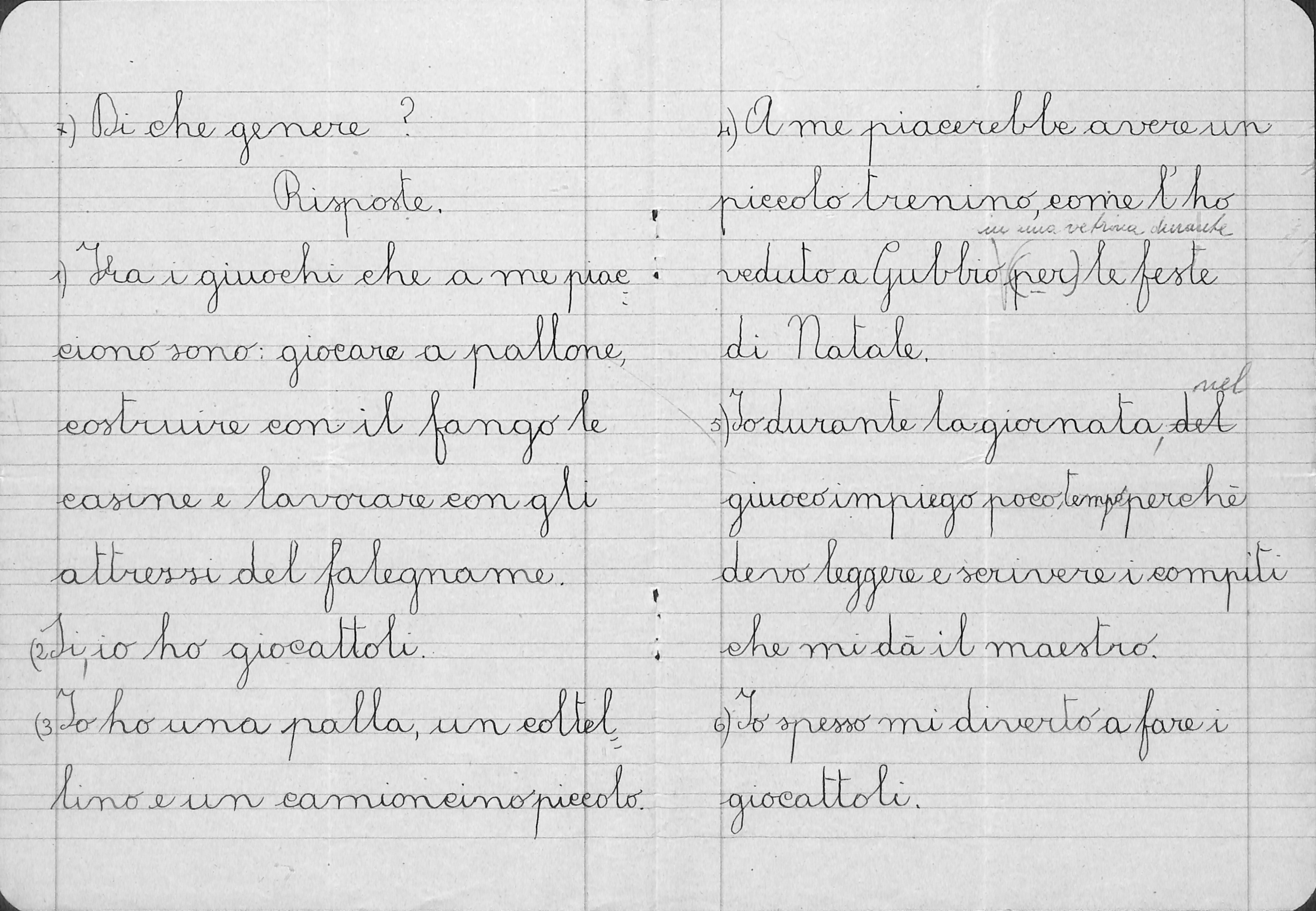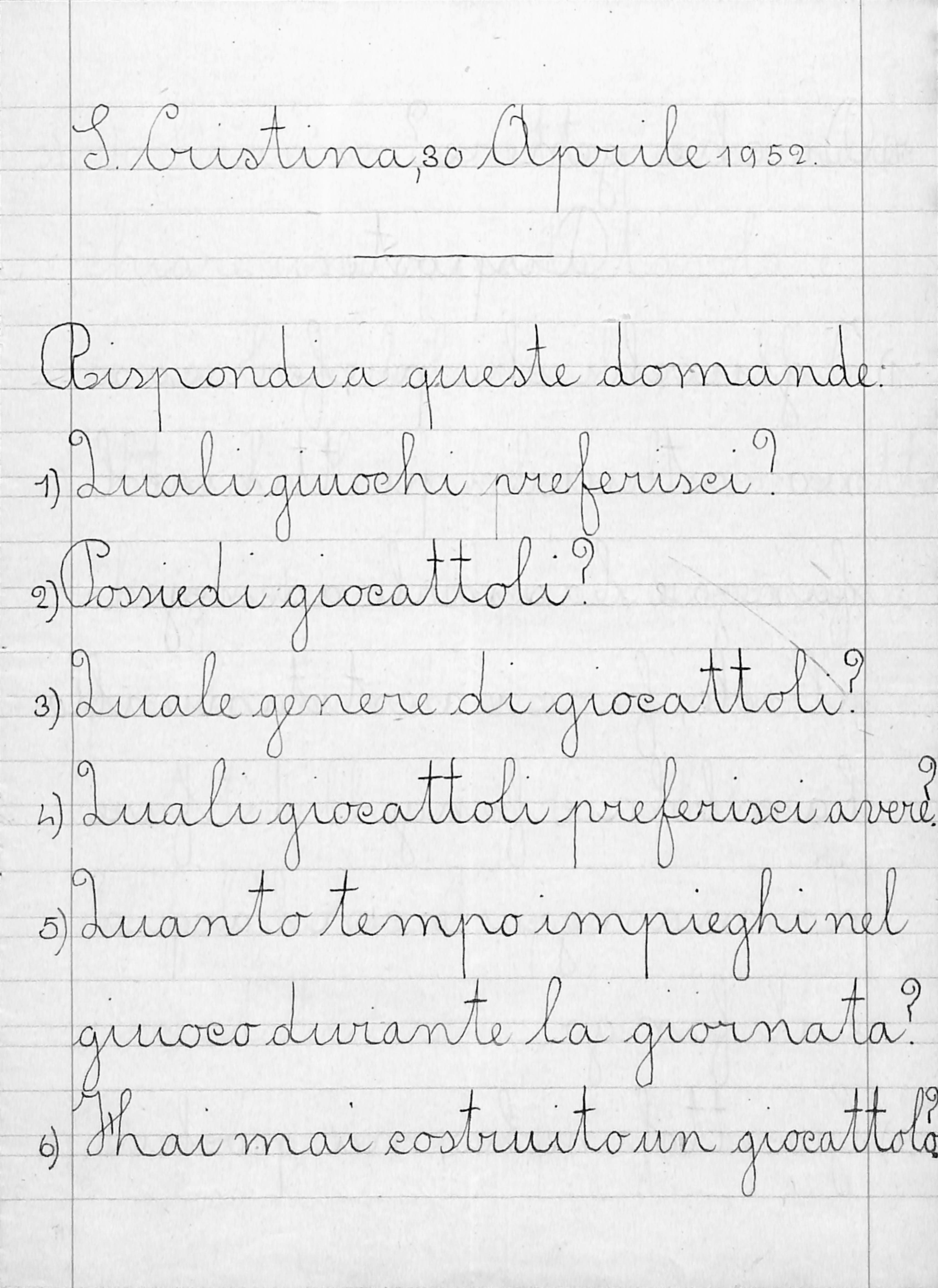 Compito in classe di un alunno della classe terza della scuola primaria Santa Cristina, aprile 1952.