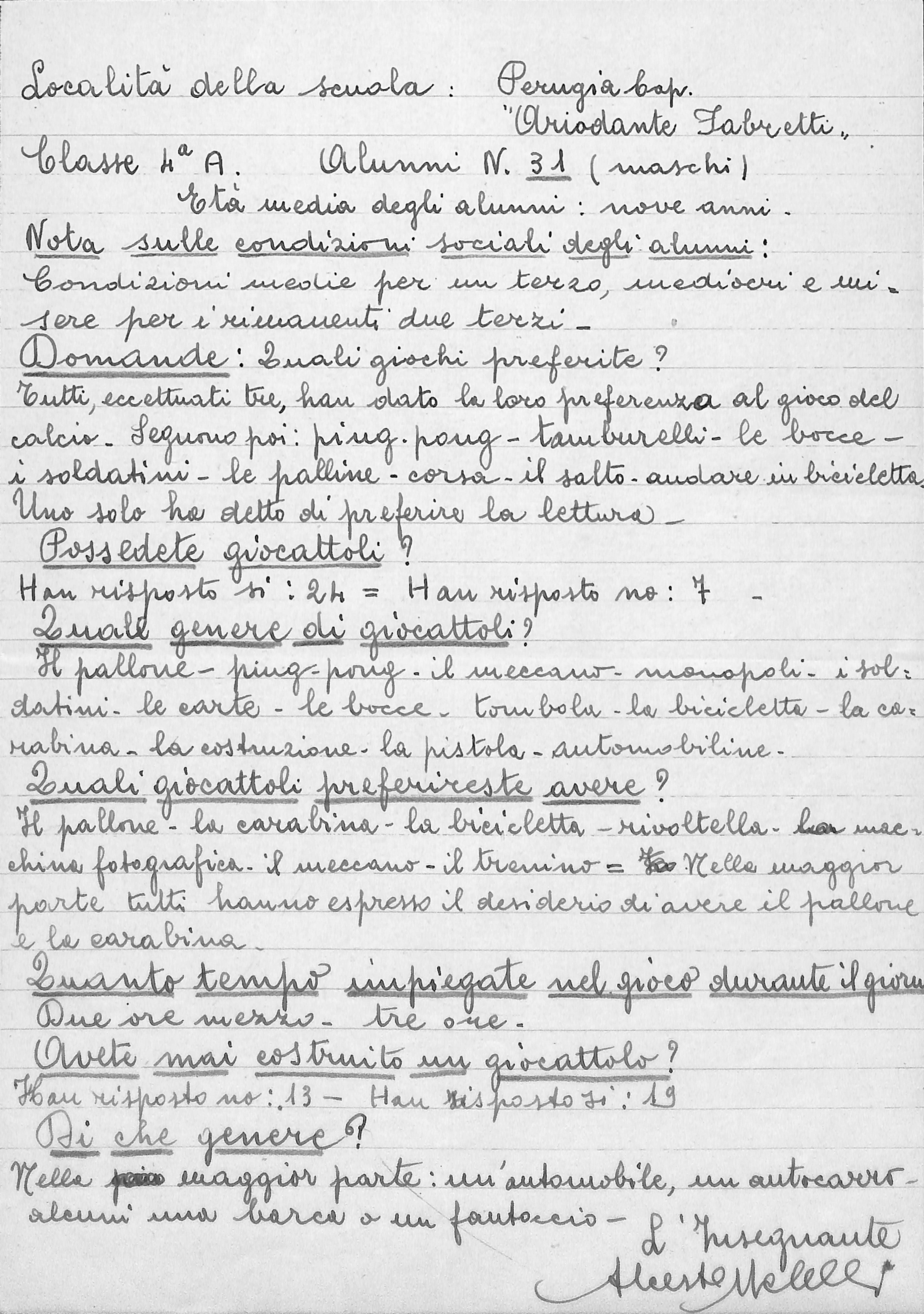 Relazione dell’insegnante Alceste Melelli per le classi terze e quarte della scuola primaria Ariodante Fabbretti di Perugia.